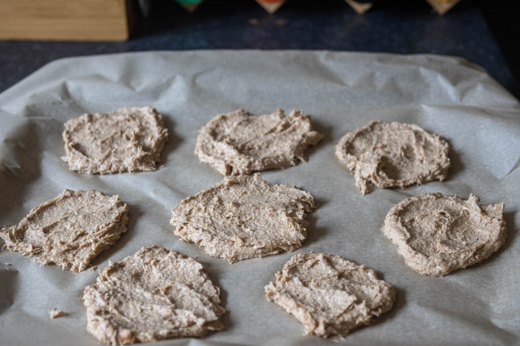 - The dough is a little bit sticky; use a spoon to form cookies with a thickness of about one sm.