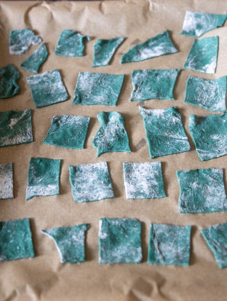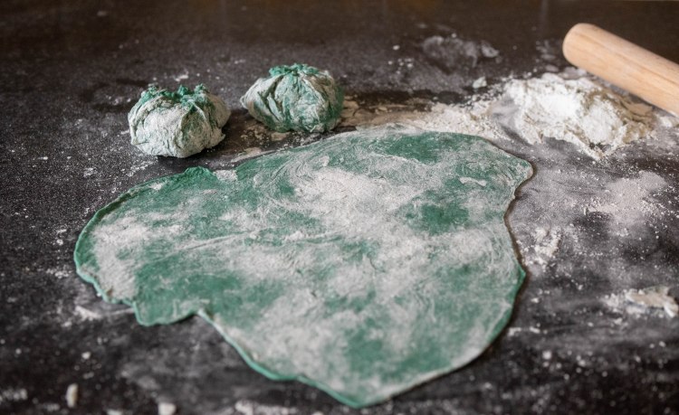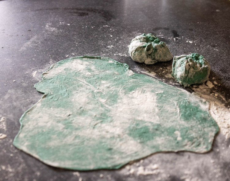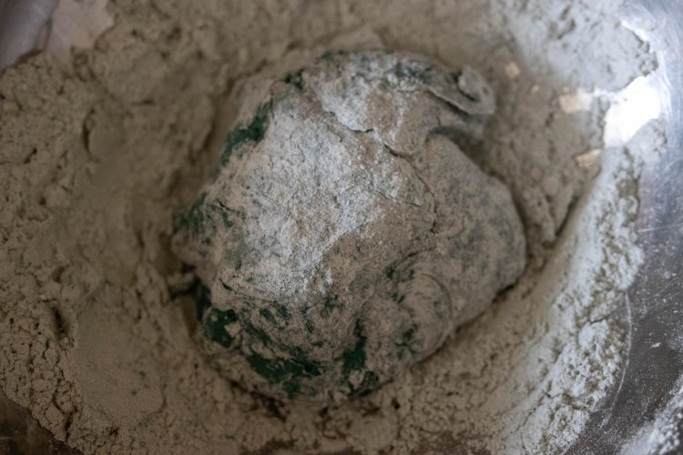 - In a bowl, place the flour, spirulina and salt and mix well until a homogeneous mixture