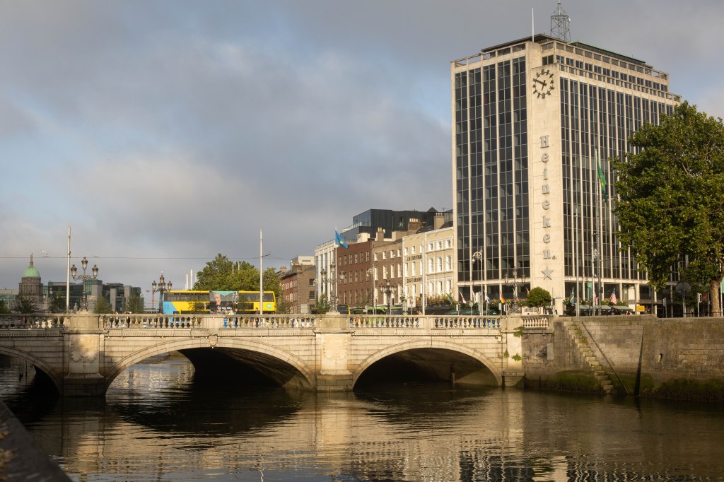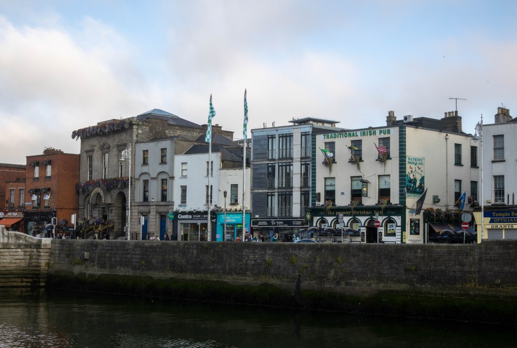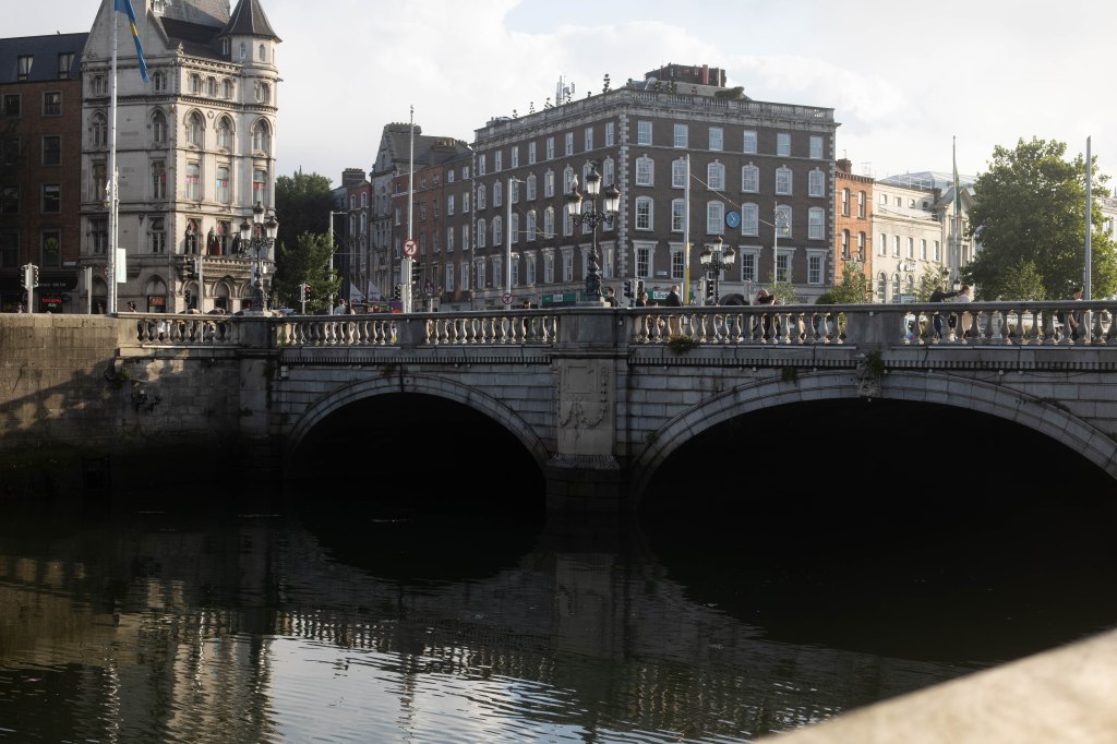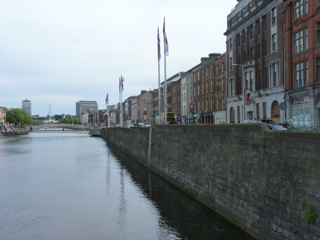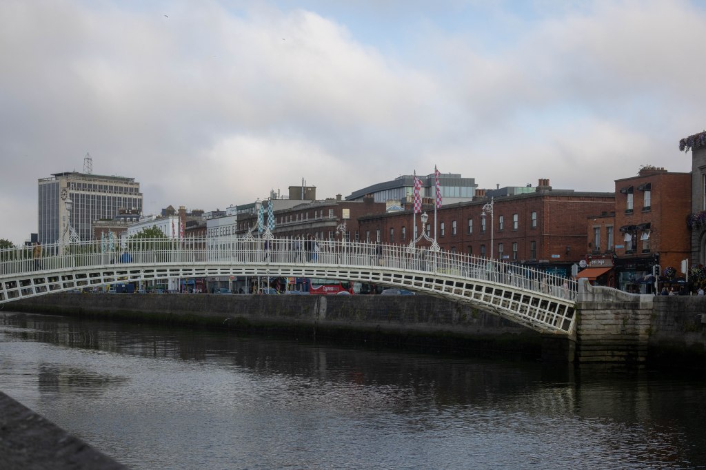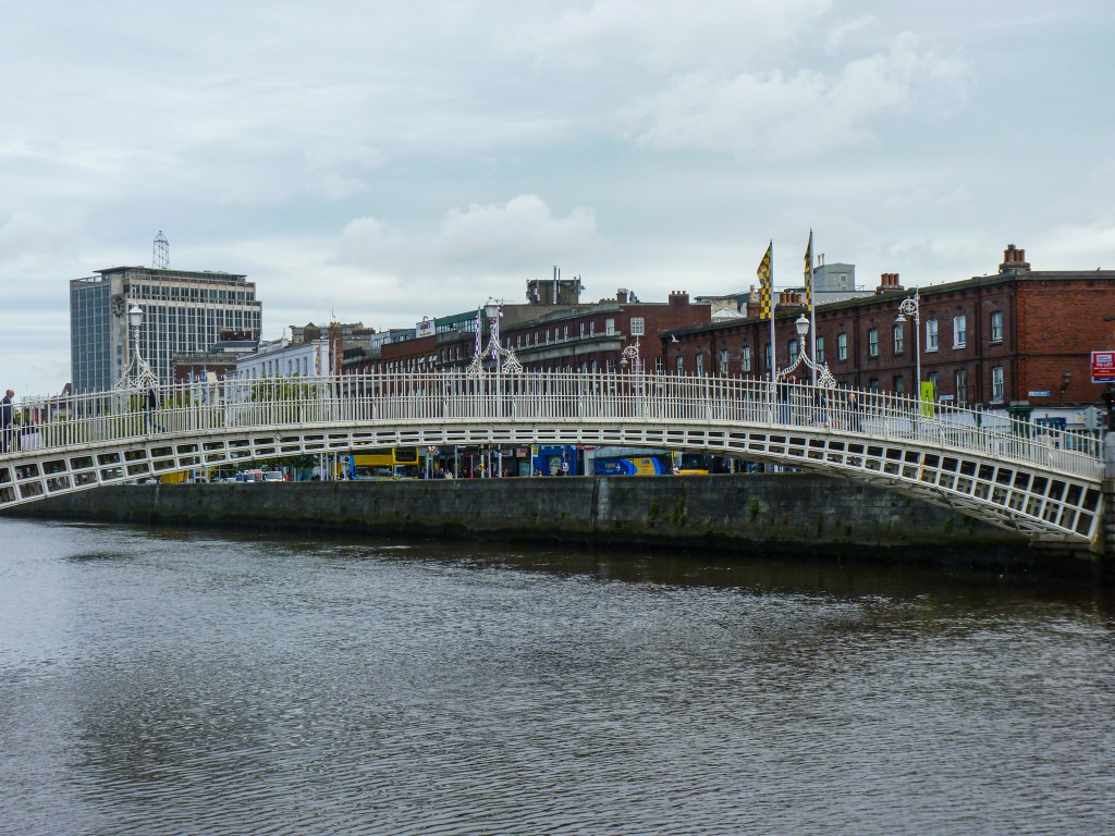 Travelling on the river, we passed a few bridges, one of which is quite famous-Ha’penny Bridge– I know it is just like a Penny or Liffey Bridge, and of course, there is a short story behind it. In the past, ferries operated on the river, but they were in such a bad condition that the Dublin administration requested the owner to fix them or build a bridge. He decided on the bridge option and was granted the right to charge for ha’penny for each crossing. The charge was dropped after a while, as there were other gate lines build and people didn’t want to pay to cross.