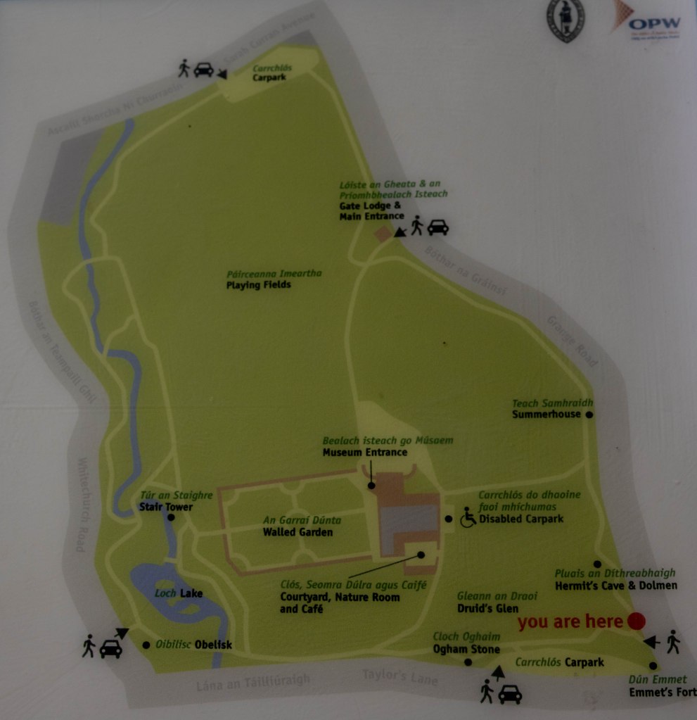 The park is situated in Rathfarnham and is about 30 minutes by bus or car from the city centre. It has a few entrances with car parks close by.