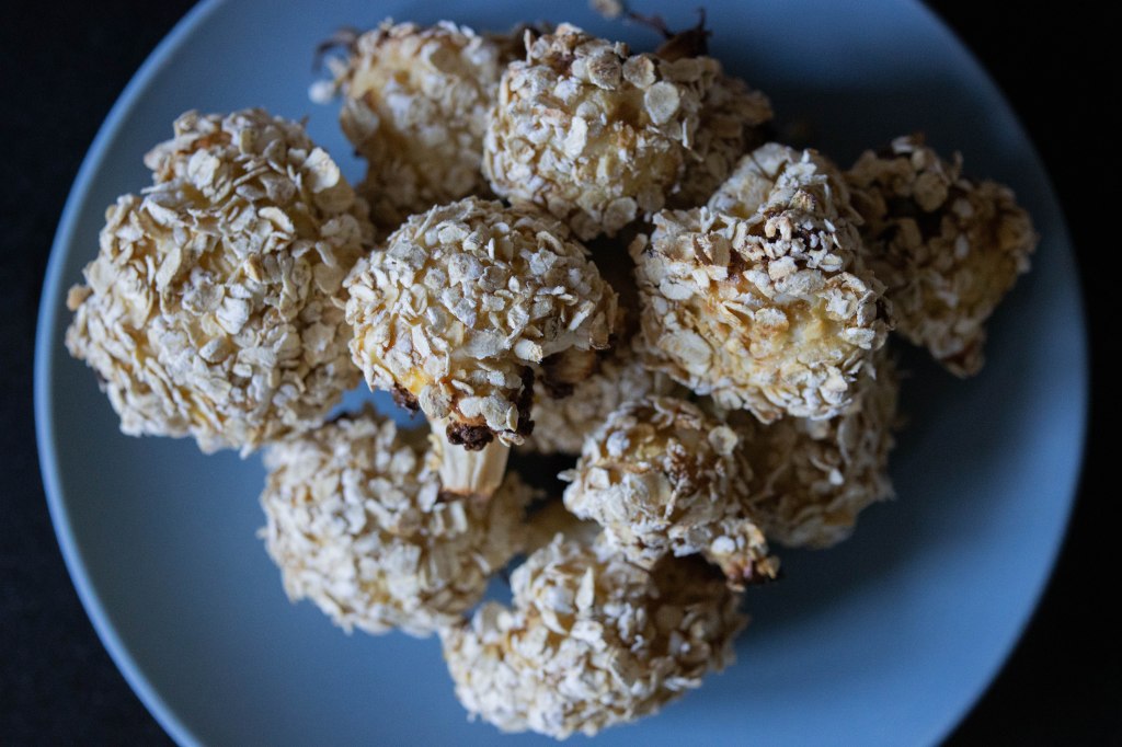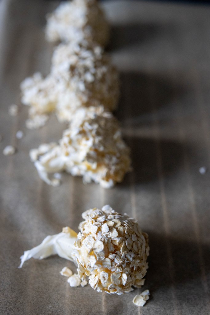 - In a second small bow place the oats, salt, and black pepper and mix well.