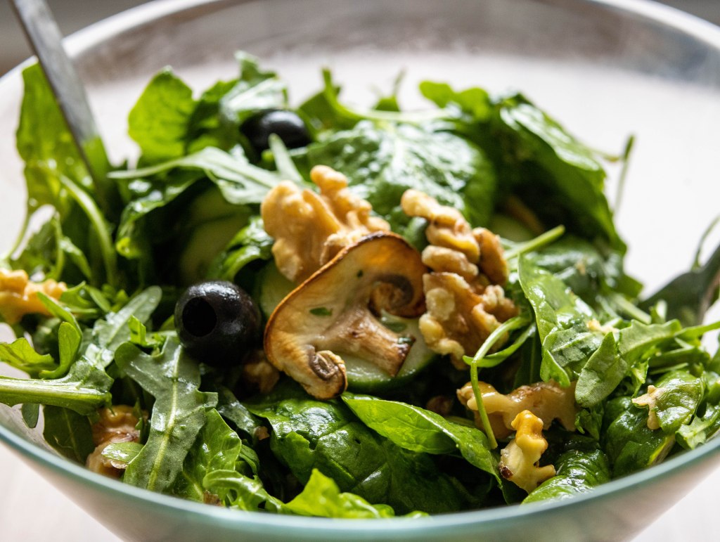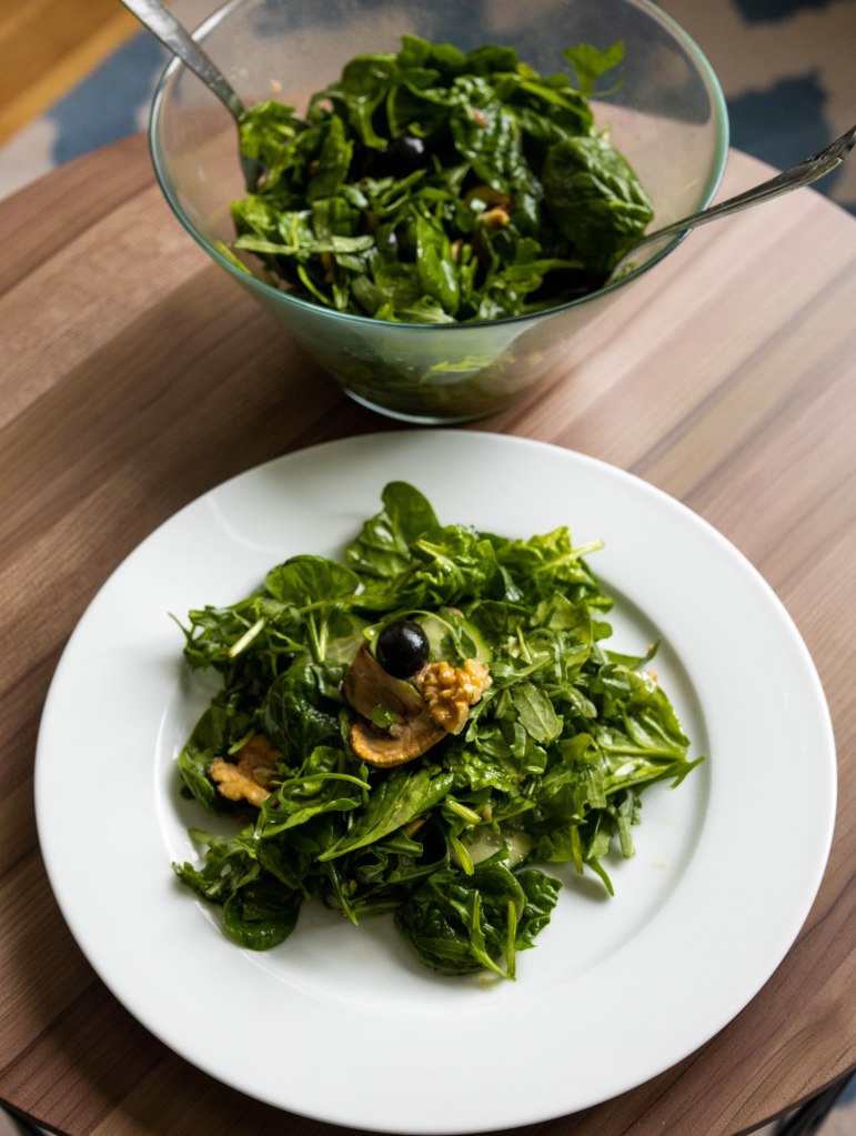 1. Rinse the spinach and rucola lettuce- if the spinach leaves are large, remove the stem.
