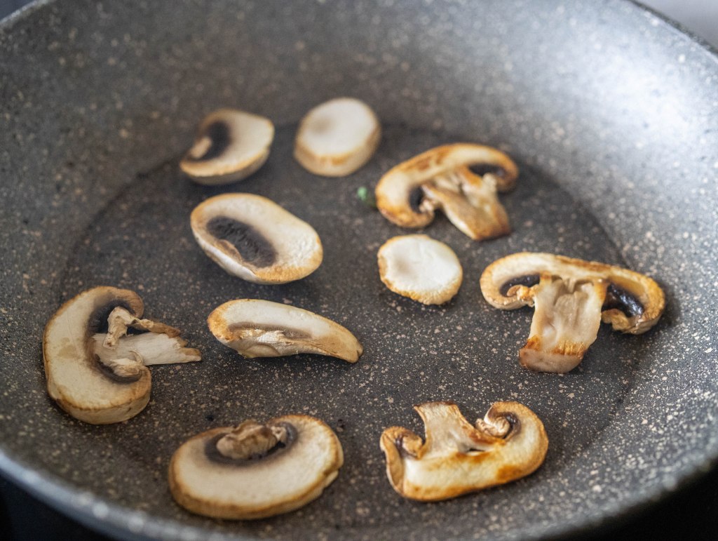 4. In a preheated with just a few drops of oil girl the mushrooms for about 2-3 min each side.