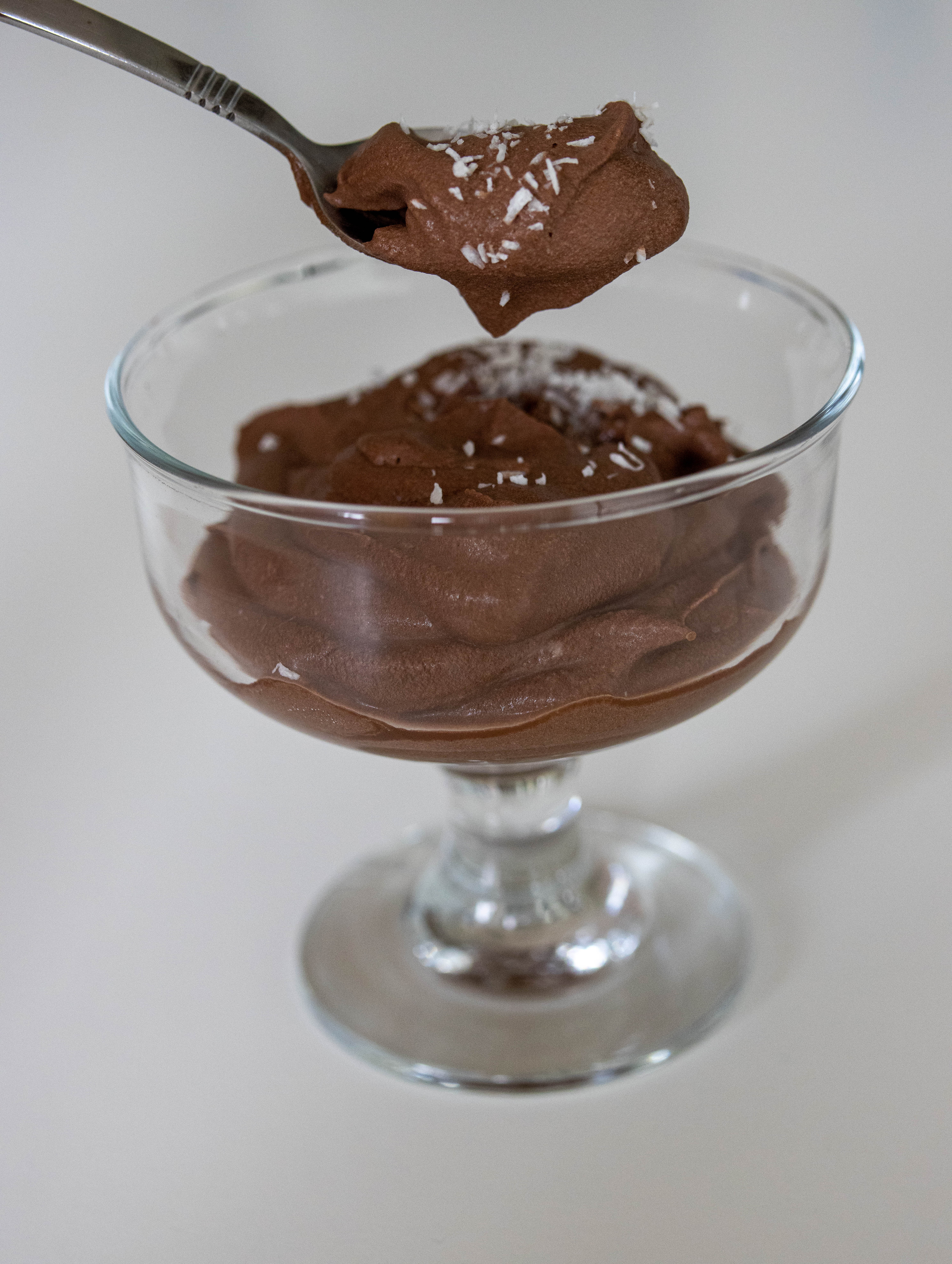 I hope you had a great week and you are enjoying the weekend. For a few days, I wanted to prepare something sweet but didn’t want to spend too much a time either cooking or cleaning after that 😉 I recently tried to prepare vegetarian ice cream with coconut creme but was unsuccessful, so I decided to try a mousse instead. I love this recipe quick, tasty with just a few ingredients- perfect to make on the fly.