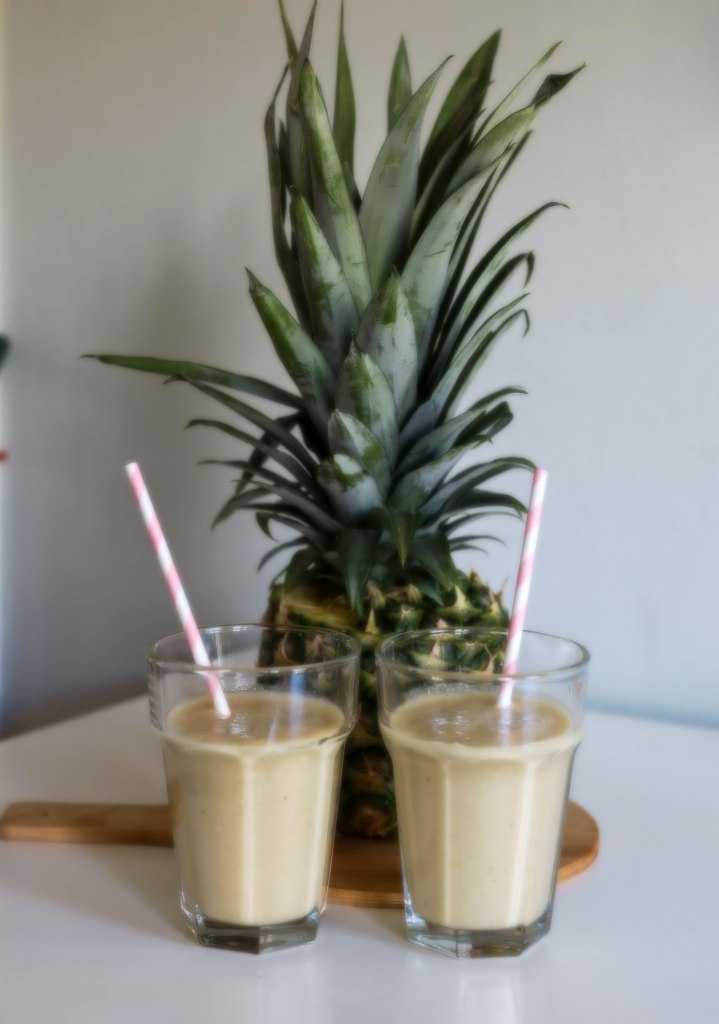 Today is another summer smoothie recipe or at least it feels like 🙂 I like pineapple, but don’t buy them so often, usually during the summer months, for flavored cold water. I haven’t tried smoothies and decided to make one for breakfast 🙂 Something quick, easy, and with just a few ingredients.