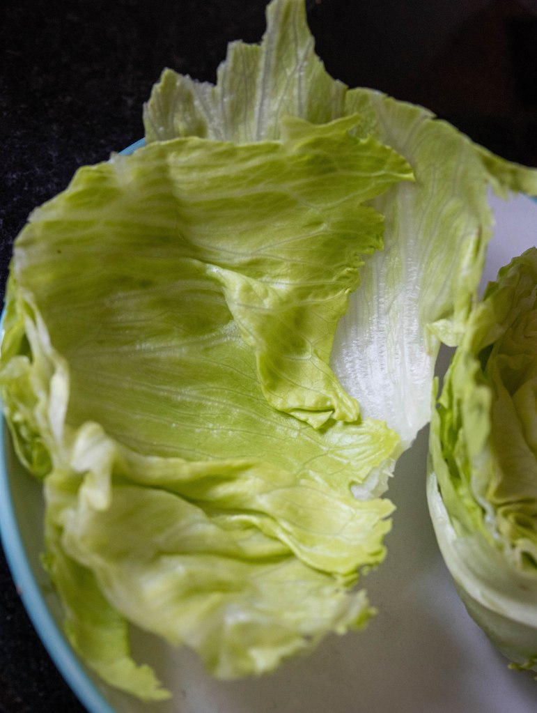 - Cut the lettuce head into half and use 3- 4 medium leaves from one half for the bottom of the sandwiches and another 3-4 for the top. The leaves used, should be a little bit bigger than the patties but not too big.
