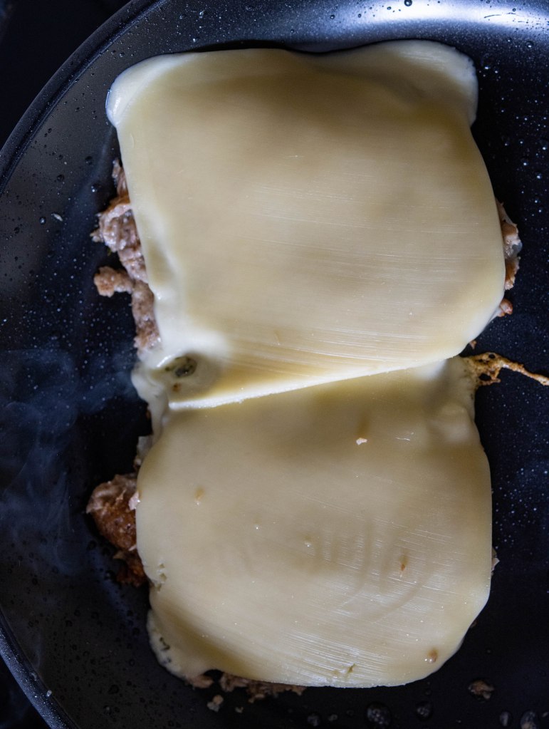 - When you are preparing the burger patties, right before taking them out of the cooking top, place a slice of the cheese ( gouda or cheddar).