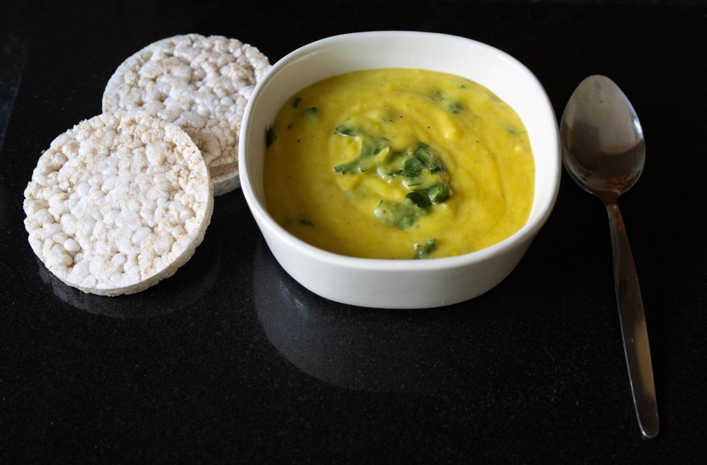 When she told me the soup she said just veggies, but in my mind was a yellow color so I named it after the colour 🙂