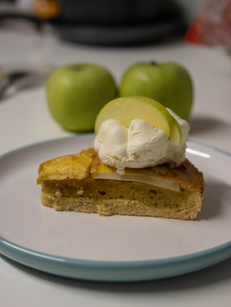I had some extra almond flour and was wondering what can I cook with it- something sweet. I had some apples as well and remembered a cake from my childhood so decided to recreate it with some small changes. The original recipe is with ready biscuits and grated apples but I cooked the biscuits dough and added just sliced apples and a few more changes hehe