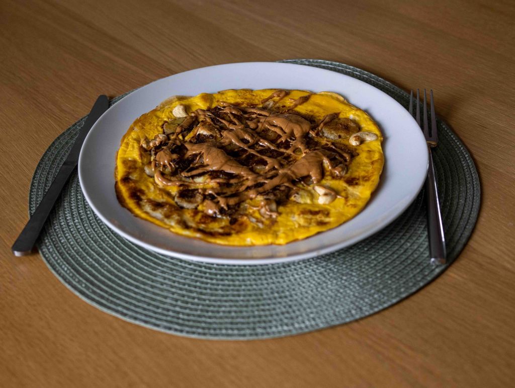 What I can recommend if you decide to try it is the ratio 1:2 -1 piece of fruit 2 eggs, if you use two bananas increase to 3 eggs. This way there is enough egg liquid to cover the fruits and easy to turn.