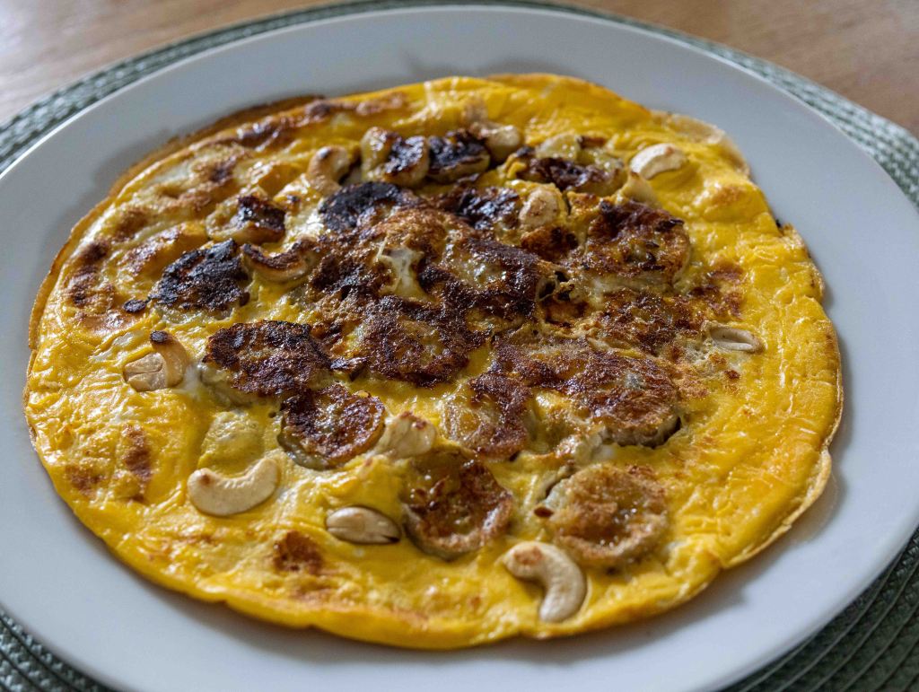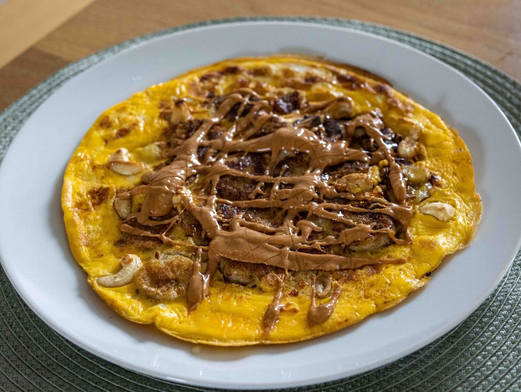 - With a flipper try to go under the omelet to unstick fruit pieces as they may not turn otherwise. Very gently so you don’t break the whole piece.
