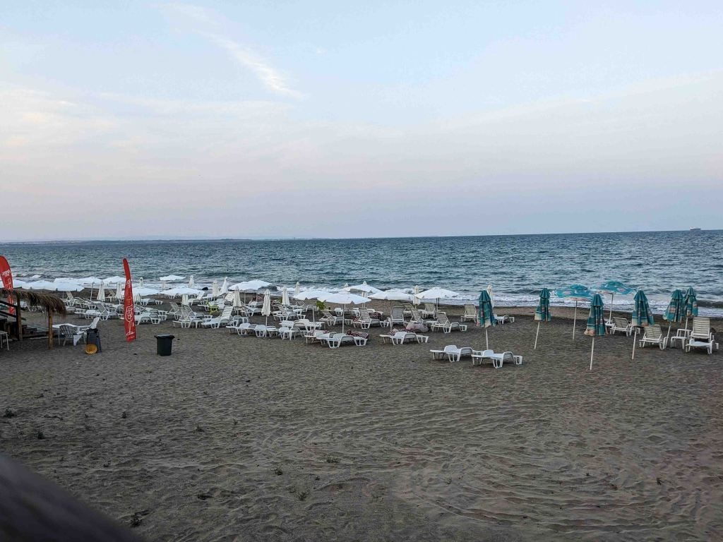 Burgas is a city on Bulgaria’s Black Sea coast. By the way, Bulgaria is located on the western part of the Black Sea coast which is our east border. There are a lot of resorts and usually in the past was full of tourists.