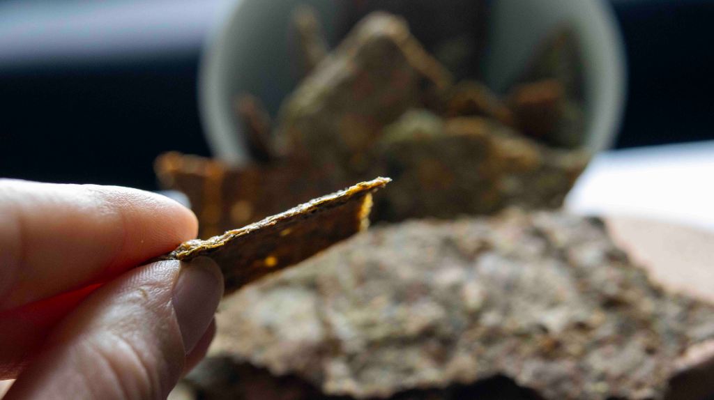 - Take out and when the big sheet cools down break or cut it down into smaller pieces.
