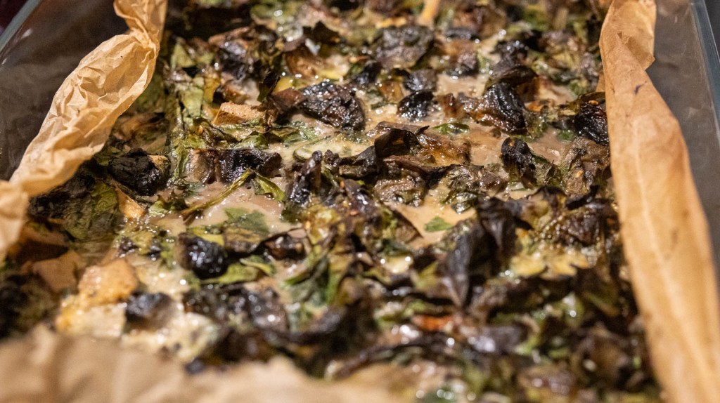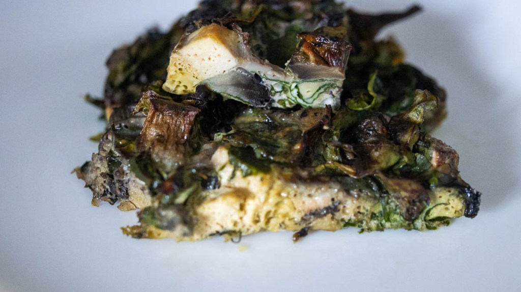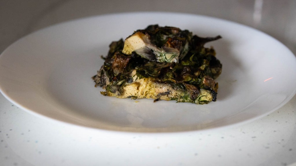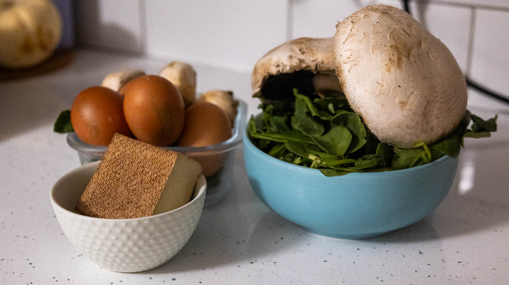 - Chop spinach, mushrooms and tofu/feta.