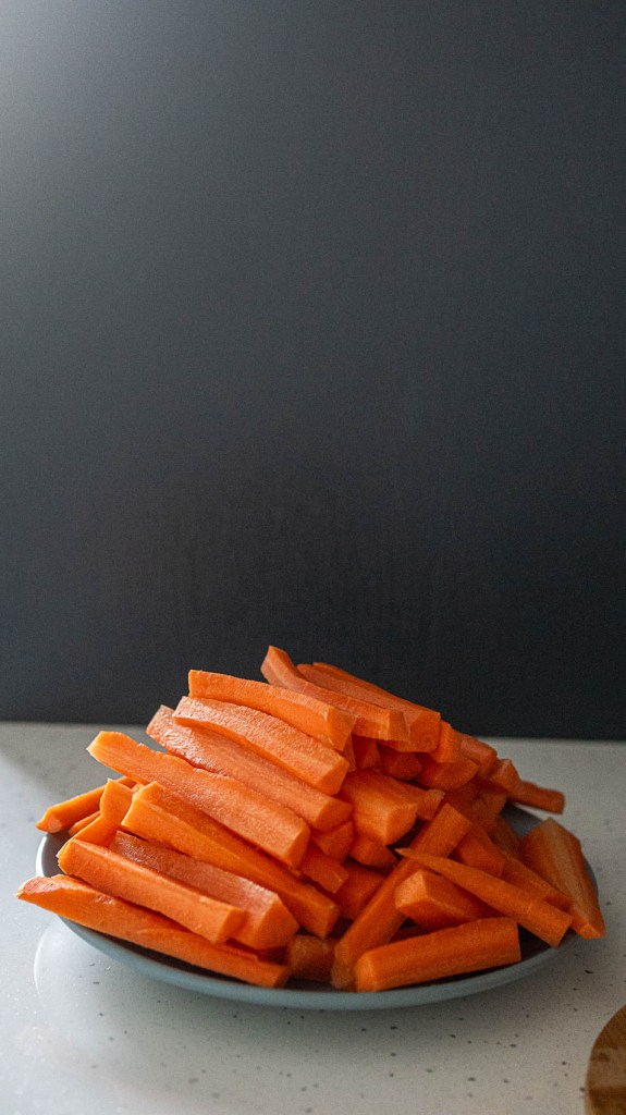 - Peel the carrots and cut them into straight lines