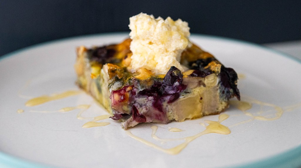 Having fruits always around and part of my breakfast I decided to try to bake them with eggs 🙂