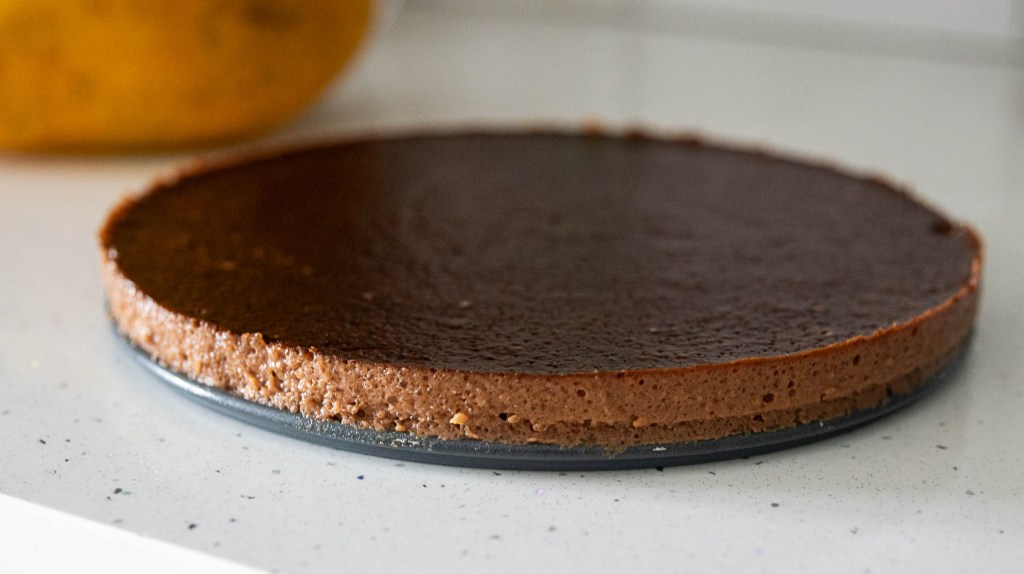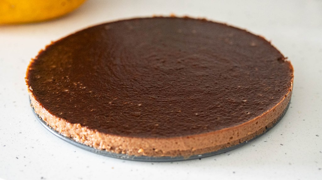 I used a baking form that separates its walls from the bottom and I have this cake-shaped pudding. You can use any shape or form with the pudding.
