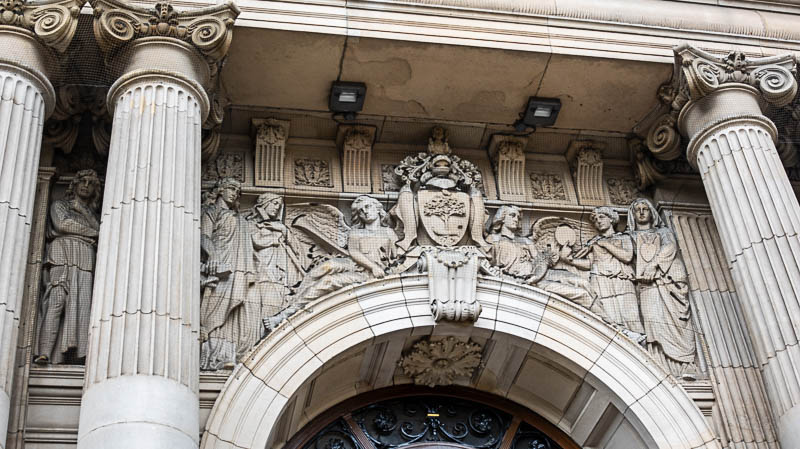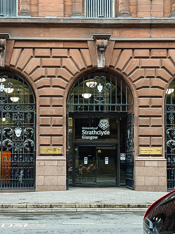 The building is one of many buildings around the city center that have a socialist look, which was due to a time in Glasgow history when a politician was fascinated by this type of architecture. (This is what the guide told us.)