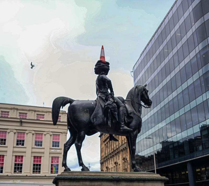 Last Stop:statue of the Duke of Wellington in Glasgow