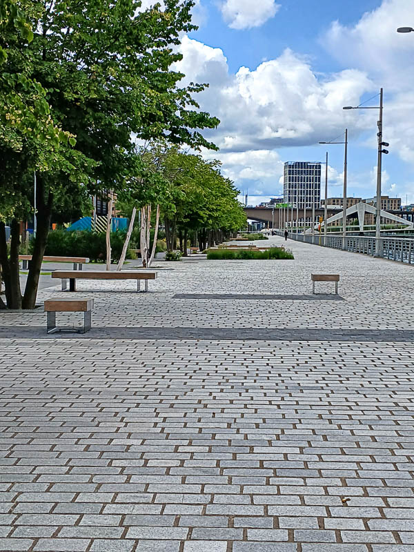 While crossing the river, I reached a nicely maintained green area, which appears to be a business center.