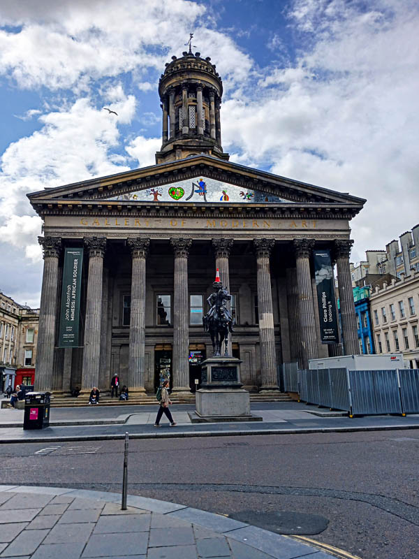 This statue is located outside the Gallery of Modern Art, and the traffic cone is a symbol of the Glaswegian humor and spirit, dating back to 1980.