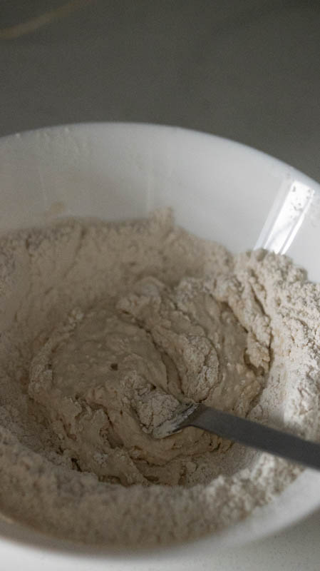 - Mix until all liquid had turned to soft mixture and star kneading with hands.