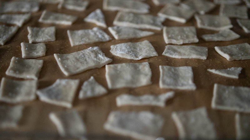 - When the dough stop absorbing flour it is ready and you can take it on a flat surface.