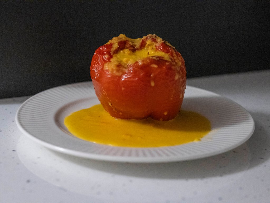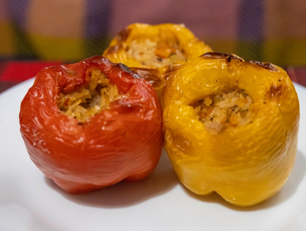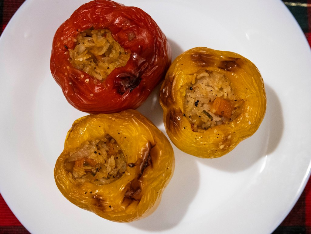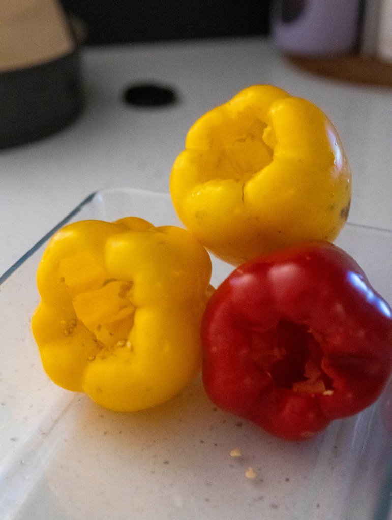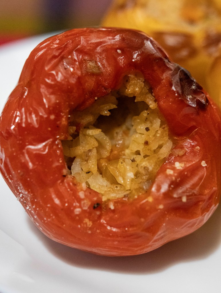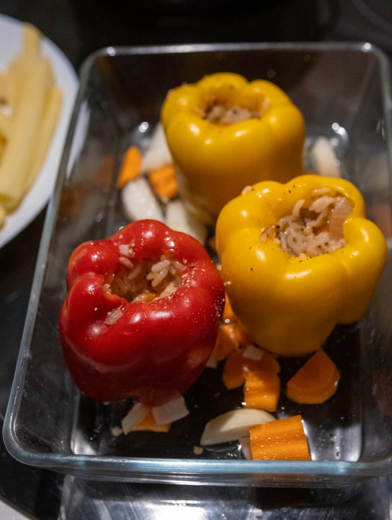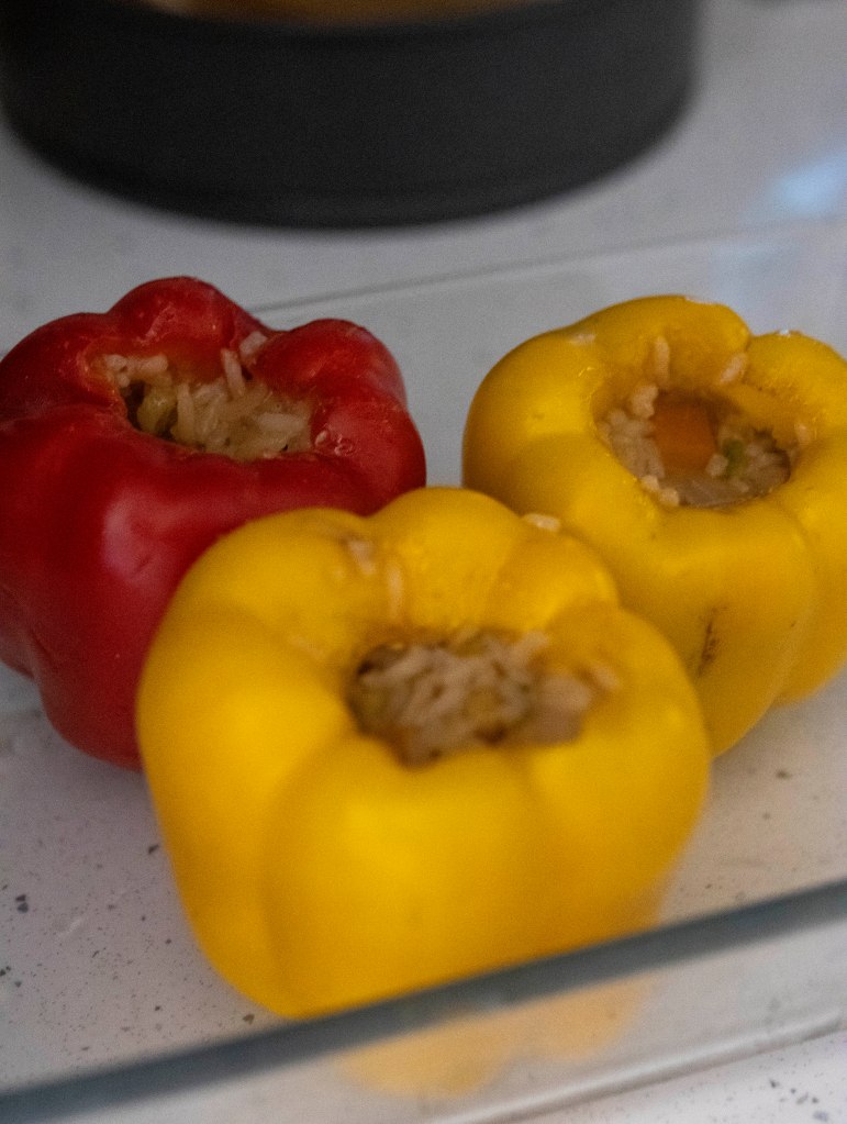 - The paprika with the veggies before baking. I had just 3, but the rice mixture is for 4 or 5, depending on how big or small the paprika is.